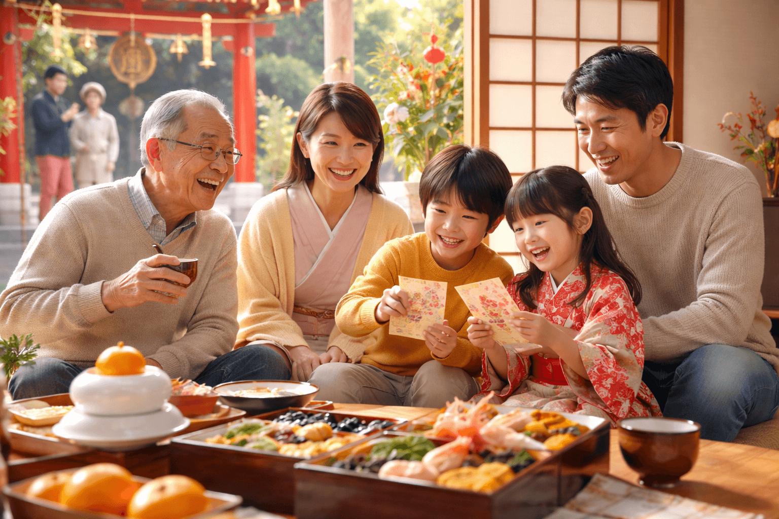 Ngày cuối cùng của tháng 12 được gọi là “oomisoka (giao thừa)” ở Nhật Bản, và đó là ngày chuẩn bị để chào đón vị thần năm mới “Toshigamisama”. Ngày 1/1~3/1 được gọi là “shogatsu-sanganichi”, là khoảng thời gian đặc biệt để các gia đình và người thân sum vầy bên nhau, đón mừng năm mới.