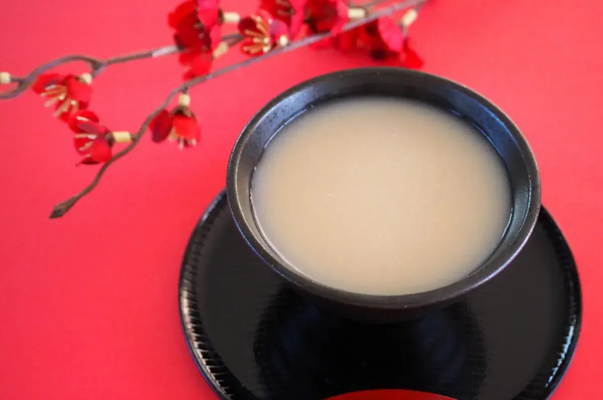 “Amazake” là rượu ngọt được làm từ gạo và men “koji” (※), bạn có thể thưởng thức tại chùa, đền vào dịp năm mới.