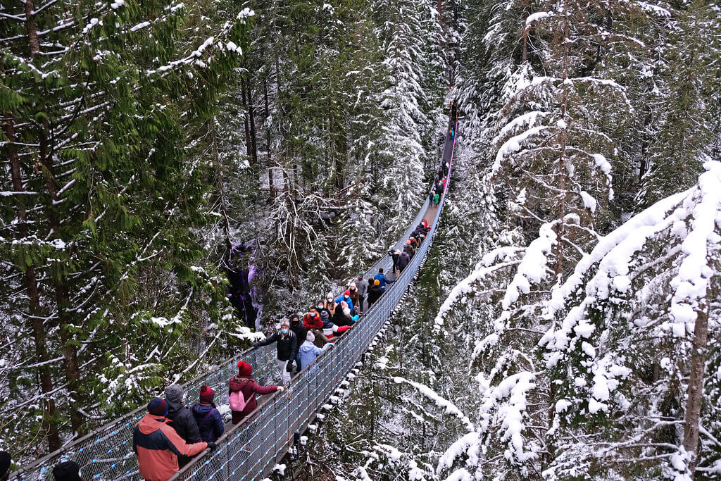 - Cầu treo Capilano: Là cây cầu treo dành cho người đi bộ, bắt qua sông Capilano tại Bắc Vancouver, Columbia thuộc Anh, Canada. Cầu thu hút khoảng 800.000 lượt khách du lịch mỗi năm. Hiện tại cầu dài 140 mét và 70 mét trên sông, xung quanh là công viên (Đã bao gồm vé)