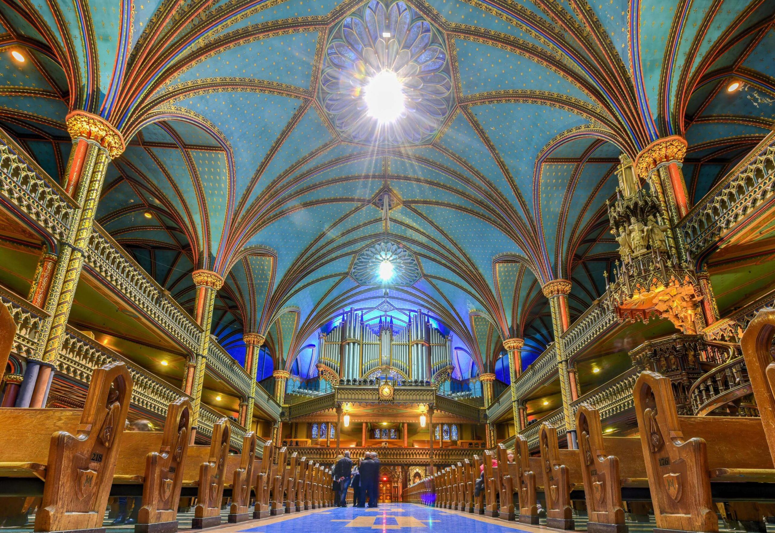 - Vương cung thánh đường Notre Dame Basilica – nhà thờ gắn liền với lịch sử Montreal. Ánh sáng xuyên qua những bức tranh thủy tinh màu trên cửa sổ và mái vòm cùng nội thất gam màu vàng ấm tạo nên một không gian linh thiêng, huyền ảo cho thánh đường.