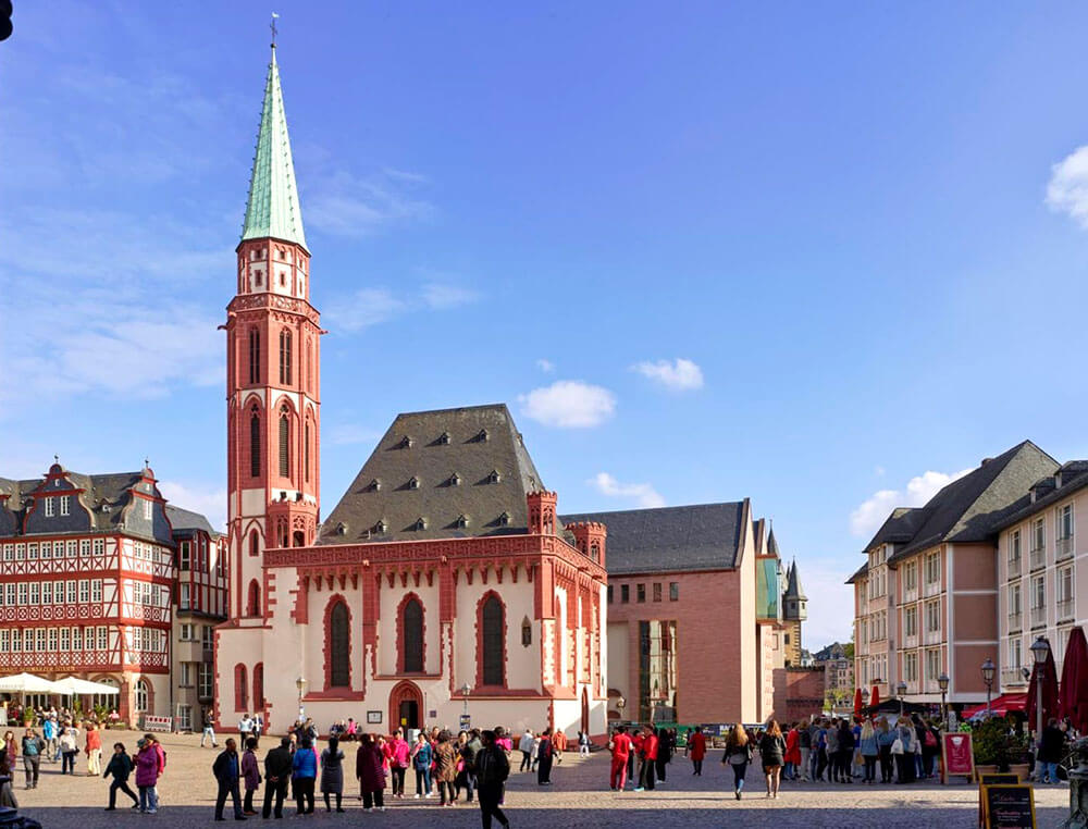 - Frankfurt Cathedral – Nhà thờ Chính tòa Frankfurt, tên đầy đủ: Kaiserdom St. Bartholomäus, là nhà thờ Công giáo La Mã lớn nhất thành phố và là nơi các Hoàng đế được bầu chọn và đăng quang.