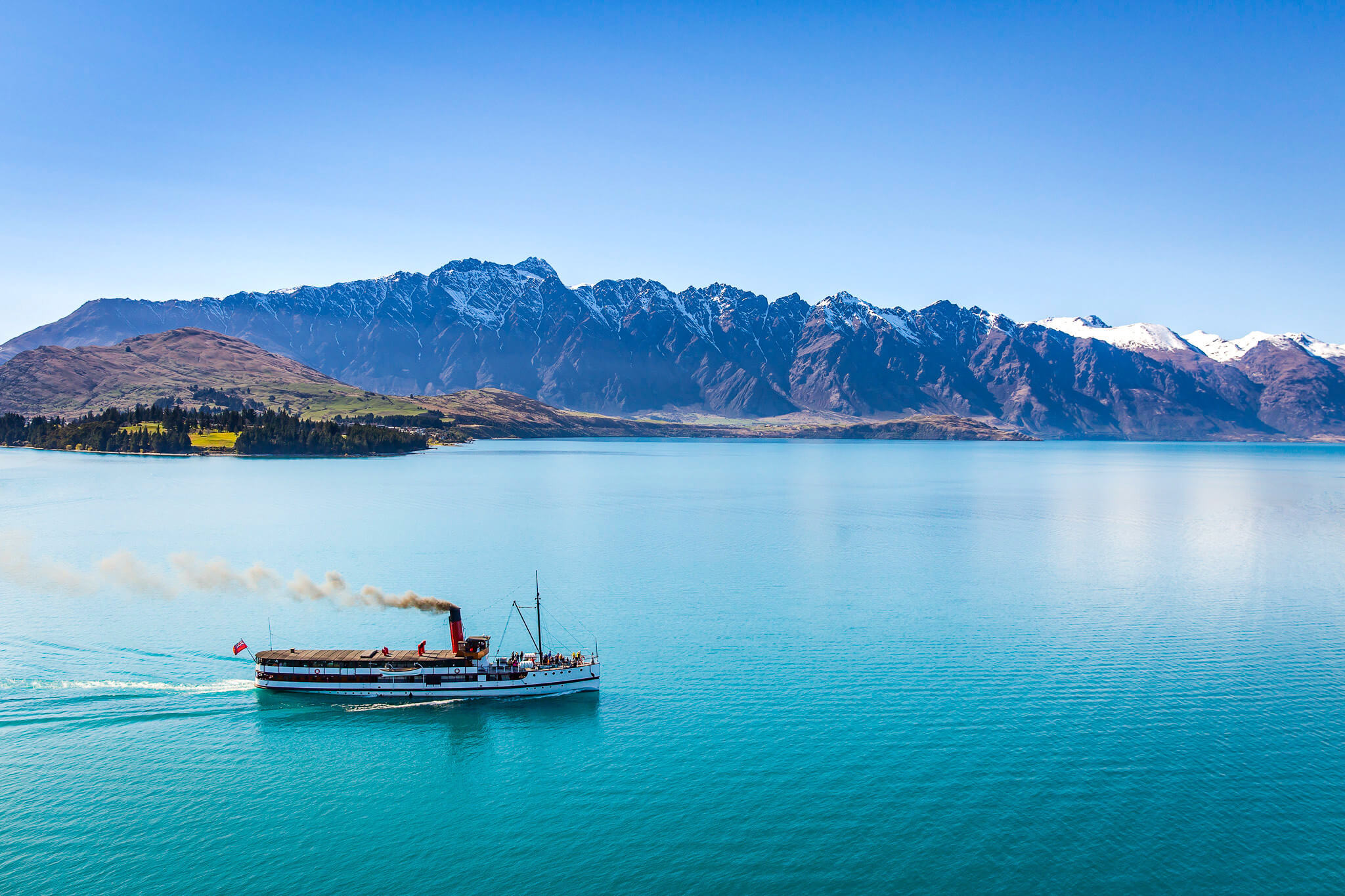 - Chiều: Đoàn di chuyển tới bến tàu, lên tàu hơi nước TSS Earnslaw đến tham quan trang trại Walter Peak: Quý khách sẽ tìm hiểu và trải nghiệm cuộc sống truyền thống của người nông dân New Zealand, thưởng ngoạn chương trình biểu diễn vui nhộn của những chú chó chăn cừu và các tiết mục cắt xén lông cừu.