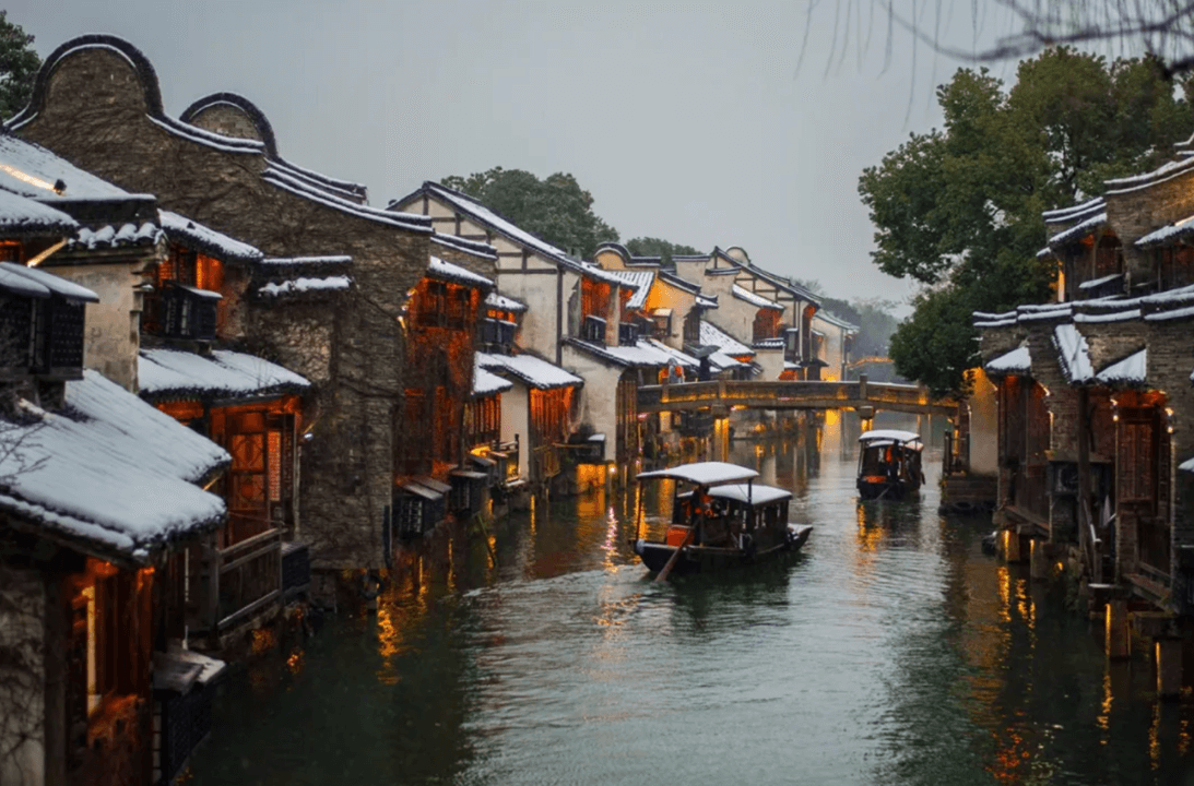 - Ô Trấn (Phía Đông) – Là một trấn cổ sông nước lớn nhất Trung Quốc với hơn 1300 năm lịch sử thể hiện qua những cây cầu đá cổ, những con đường lát đá và những công trình gỗ chạm khắc tinh tế. Gần như vẫn giữ được kiến trúc cùng tập tục sinh sống hơn 1.000 năm qua nên Ô Trấn trở thành điểm du lịch mà ai cũng muốn đến một lần.