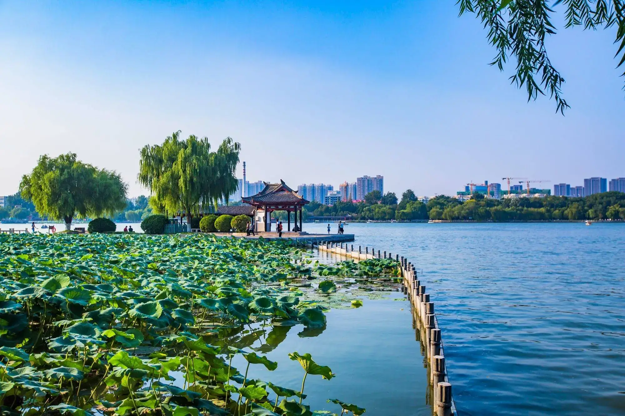 - Hồ Đại Minh – viên ngọc xanh giữa lòng thành phố, nơi mặt nước phản chiếu bóng liễu thướt tha và những cây cầu đá cổ kính. Đây cũng là điểm hẹn thơ mộng, gắn liền với nhiều giai thoại văn nhân của Trung Hoa. Hồ Đại Minh không chỉ đẹp về cảnh sắc, mà còn gắn với truyền thuyết lãng mạn giữa Hạ Vũ Hà và vua Khang Hy, từng được đưa vào phim nổi tiếng Hoàn Châu Cách Cách.