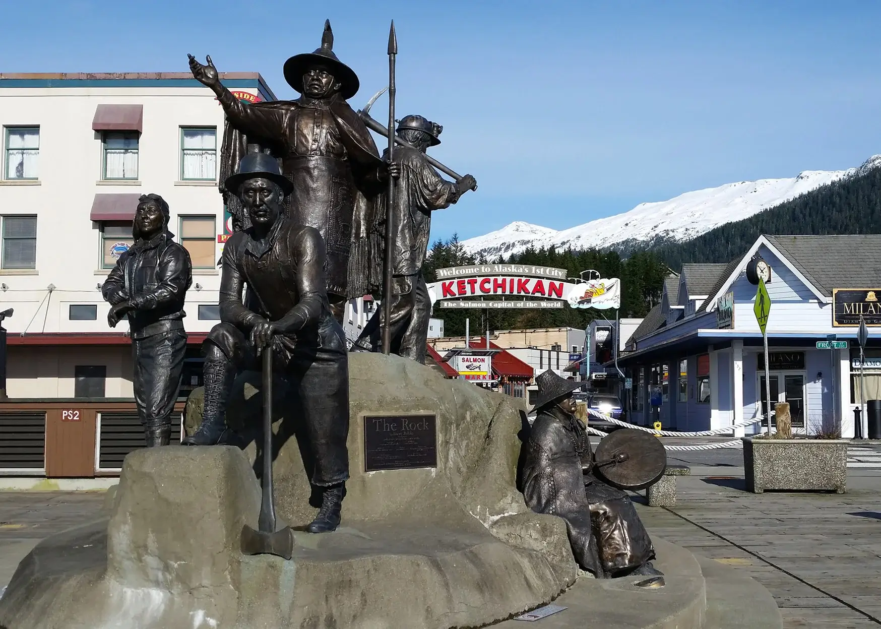 - The Rock – bức tượng ngoài trời bên bến cảng, tưởng nhớ những người tiên phong của Ketchikan từ các thợ gỗ, phi công miền rừng, các nữ thám hiểm cho đến một tay trống Tlingit được cho là có khả năng kết nối với thế giới tâm linh.