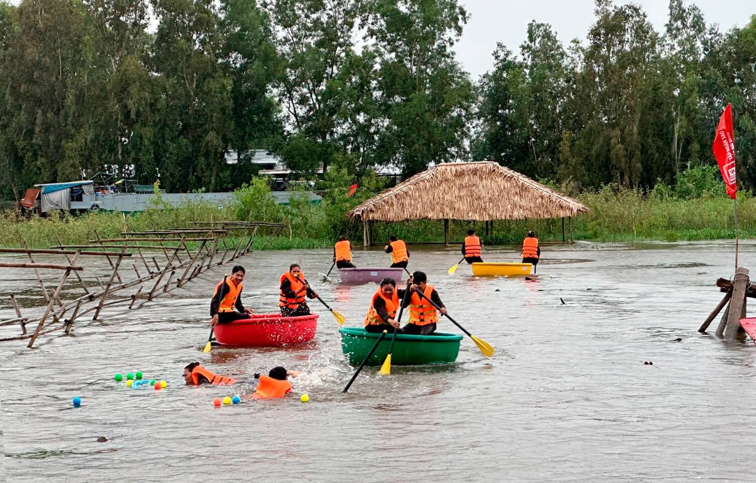 - Quý khách chuyển sang đi đò chèo: đây là hành trình thú vị nhất. Đò chèo nhẹ nhàng rẽ nước đi vào rừng tràm xanh mướt với khung cảnh tuyệt đẹp.
