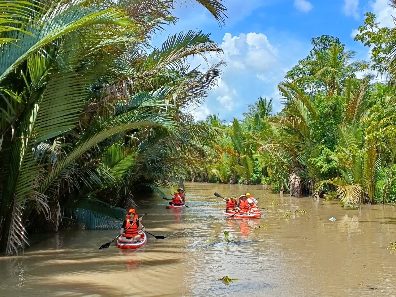 - Quý khách thưởng thức những giai điệu Đờn Ca Tài Tử Xứ Dừa, ăn trái cây miễn phí. Sau đó, du khách dùng xuồng chèo len lỏi vào rạch nhỏ ngắm nhìn 2 hàng dừa nước thiên nhiên và phong cảnh đơn sơ của miệt vườn.